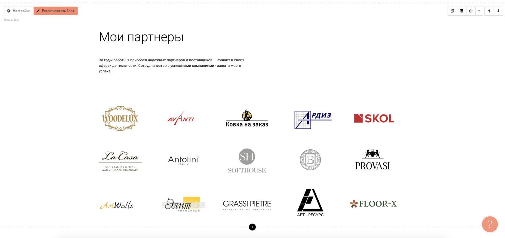 Редактирование страницы "Партнеры"